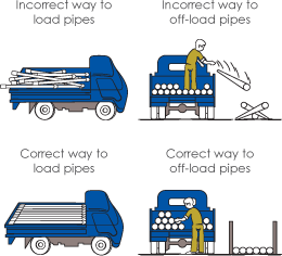 | The pipes should be kept on a flat surface or on level ground free from stones and sharp objects. |